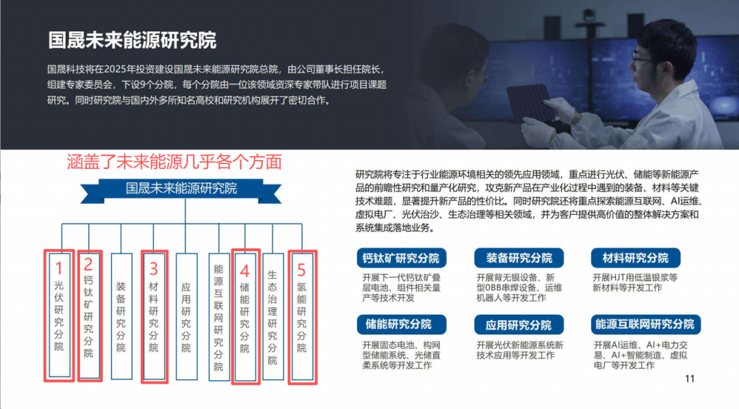 国晟科技控股股东国晟能源与上海交大太阳能研究所签订独家合作协议,专注HJT降本增效+钙钛矿/HJT叠层研发,研究院下设6个课题组,由交大教授与国晟专家联合带队。