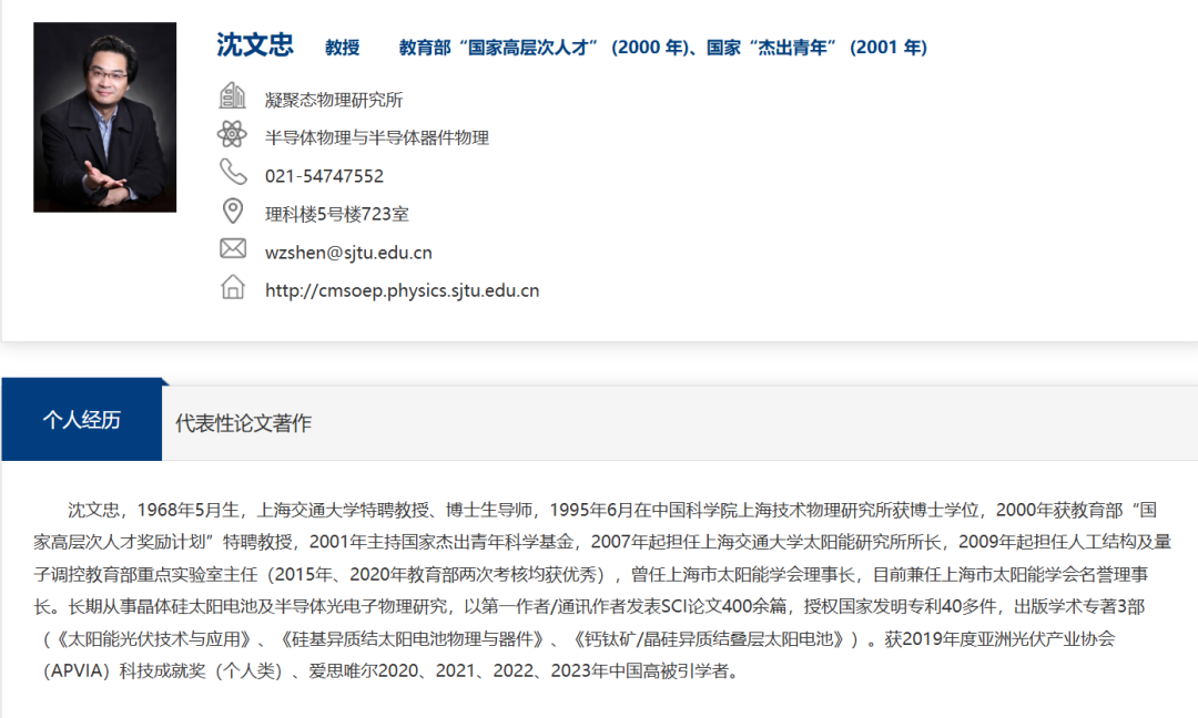 ? 沈文忠教授:上海交大太阳能研究所所长、国家重点研发计划“可再生能源”首席科学家,HJT与钙钛矿叠层技术权威,发表SCI论文500+篇、引用超2万次,直接担任国晟-交大异质结研究院院长,主导双方联合研发。
