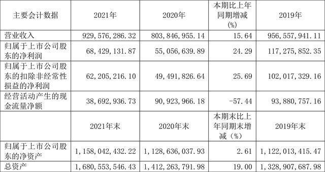 截至2021年末,公司经营活动现金流净额为3869.29万元,同比下降57.44%,主要系本期采购支付款项增加所致;筹资活动现金流净额1.22亿元,同比增加1.23亿元;投资活动现金流净额-3563.68万元,上年同期为-1.18亿元。