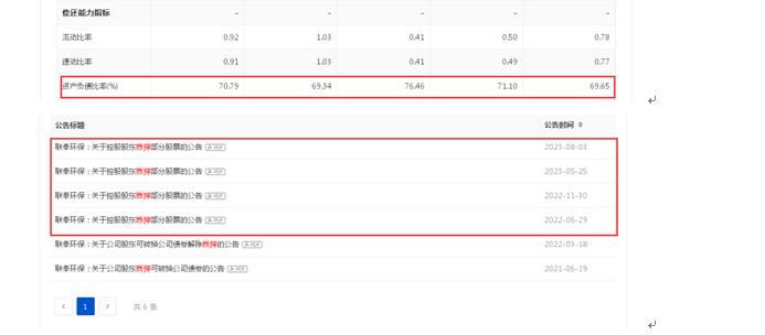 现金流方面,联泰环保最近两年即2021年、2022年的经营现金流净额均为净流出。现金流“恶化”的同时,其负债率居高不下,最近五年的资产负债率平均高达71.47%。值得注意的是,去年6月以来,至今,联泰环保已经四次公告控股股东质押股票的信息,截至发稿,联泰环保股价为5.78元/股。
