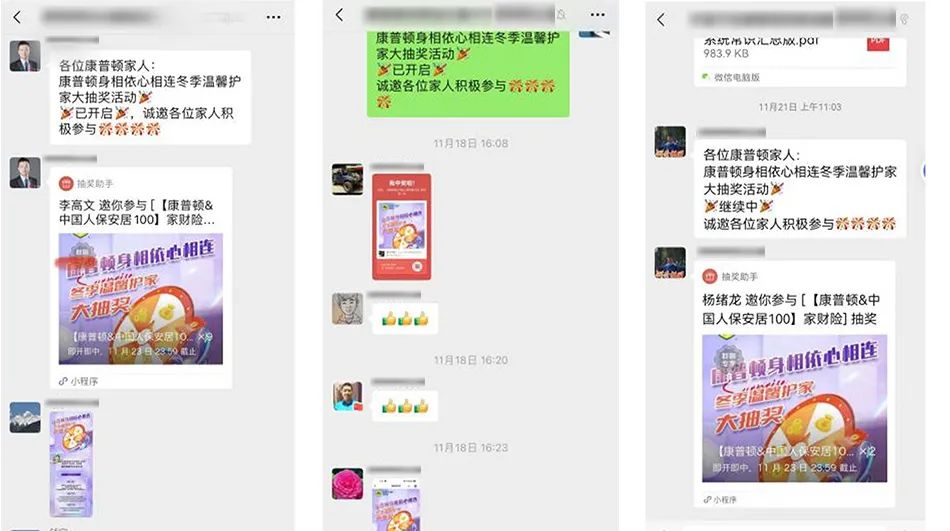 活动一经推出得到了全国合作伙伴的积极响应,迅速在拥有两万余家终端合作伙伴的百余个地区康普顿技术交流群激情联动,最终,千名合作伙伴幸运抽中康普顿赠送的中国人保安居100家财险。