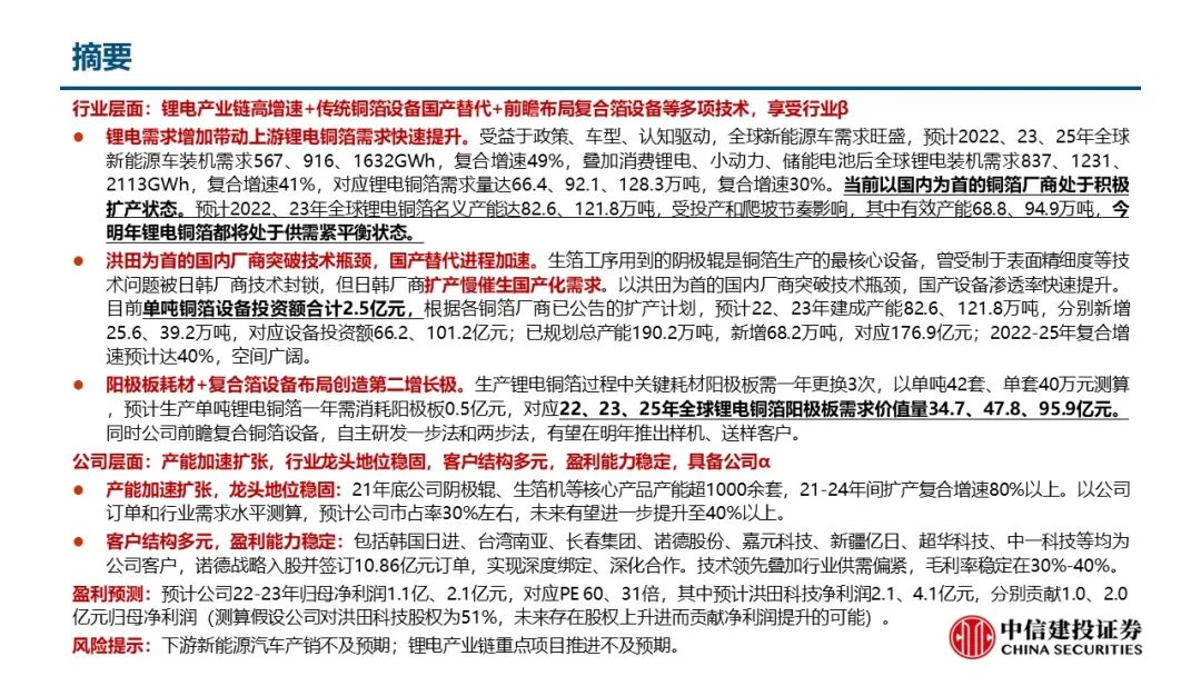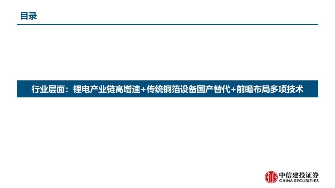 行业层面:锂电产业链高增速+传统铜箔设备国产替代+前瞻布局复合箔设备等多项技术,享受行业β