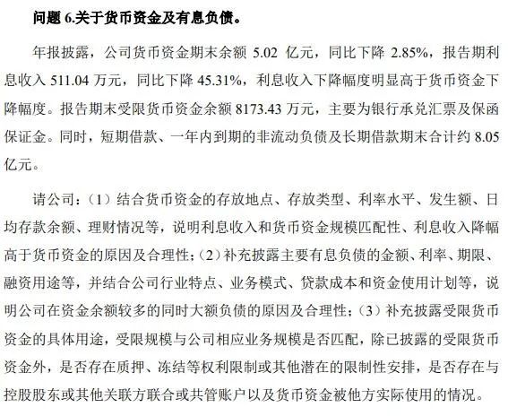 此外,公司还就商誉、应收账款、存货、货币资金及有息负债等财务核心问题做出答复。