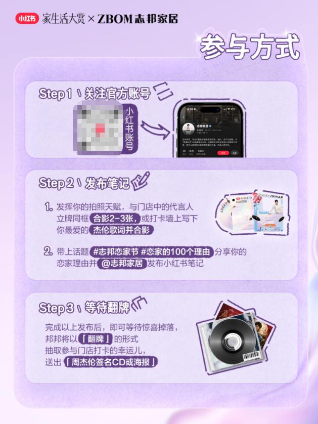 在小红书平台,ZBOM志邦家居将联动家居领域的精致生活达人,共同见证品质生活的无限魅力,带领大家深入体验ZBOM志邦家居产品的品质、创新技术和使用细节。同时,ZBOM志邦家居全国线下门店也将同步开启与品牌代言人周杰伦物料的打卡活动,在小红书发布门店打卡笔记,还将有机会获得品牌代言人周杰伦签名CD或海报的惊喜好礼(更多详情请移步官方小红书账号@ZBOM志邦家居)。