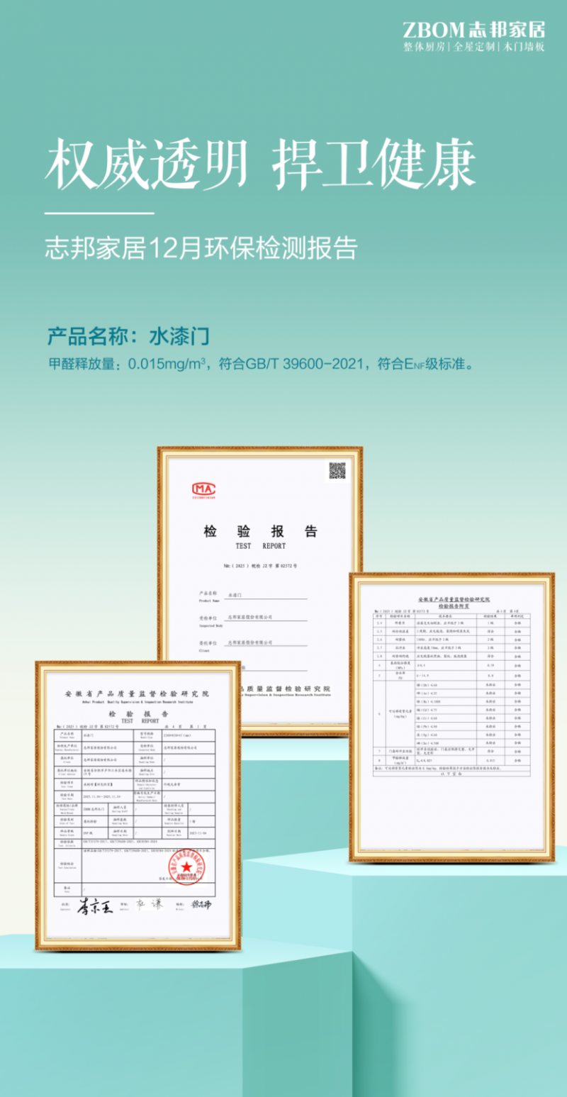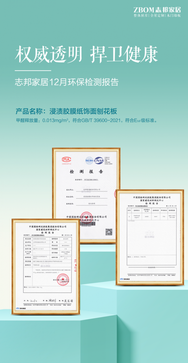 在定制家居行业不断发展的当下,产品环保性能已成为消费者决策的关键依据,也是企业践行社会责任的核心体现。近期,家居行业领军企业志邦家居正式发布12 月环保公示,依托权威检测机构出具的硬核数据,公开核心产品环保指标,再次印证了其行业标杆实力。