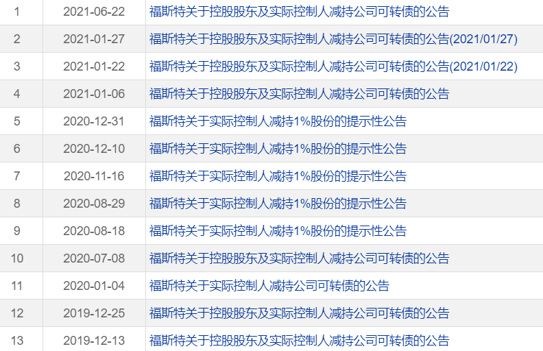 自2020年开始福斯特股价一路上扬,林建华一路减持。该实控人不仅通过股票减持,还通过可转债减持。2019年和2020年通过发行可转债,公司共募集了28亿元资金,该实控人凭借着无条件配售资格获得相应数量的配售,而后减持可转债,转头套利6.41亿元。