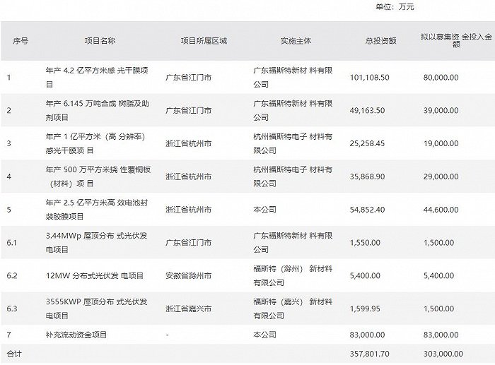 公司先前公告称,拟公开发行可转债,募集资金不超30.3亿元,用于年产4.2亿平方米感光干膜等项目。