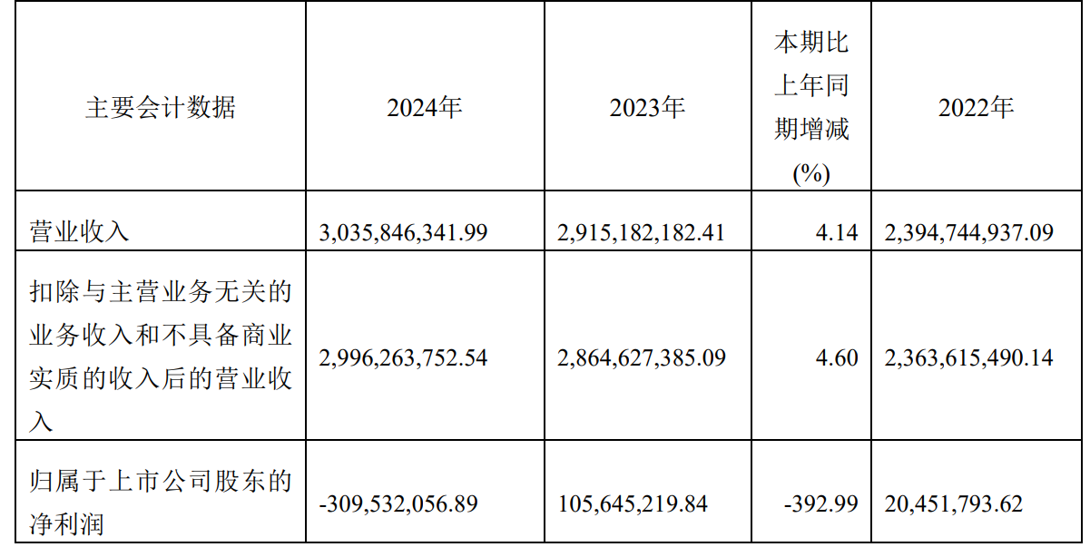 4月28日,深圳歌力思服饰股份有限公司(以下简称“歌力思”)发布2024年报。年报显示,2024年歌力思营收为30.36亿元,同比增长4.14%;归母净利润为-3.10亿元,同比下降392.99%;扣非归母净利润为-3.13亿元,同比下降489.37%;基本每股收益为-0.85元/股。