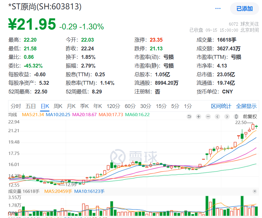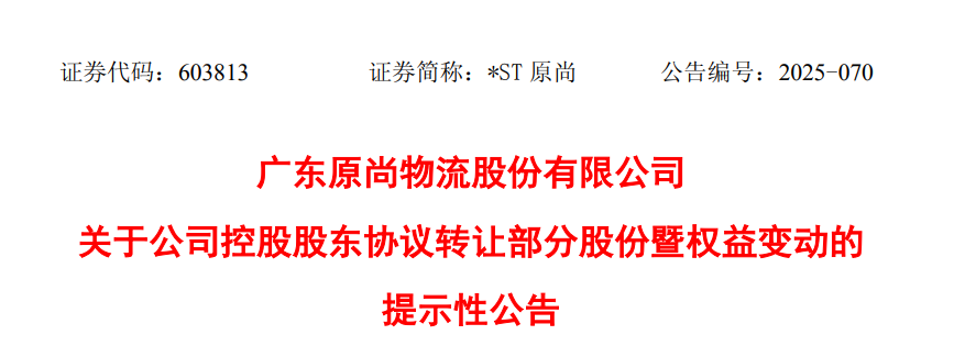 9月15日,*ST原尚(603813.SH)宣布,公司控股股东原尚投资控股有限公司拟以每股20.36元的价格,向信达国际资产管理有限公司转让535.58万股股份,占公司总股本的5.1%。此次股份转让不涉及公司控制权变更,也不会对公司治理结构和持续经营产生重大影响。本次协议转让系转让方原尚投资基于自身投资规划安排以及支持上市公司优化股权结构、引入新的投资者,受让方基于对上市公司未来发展的信心及投资价值的认可而发生的股份变动。
