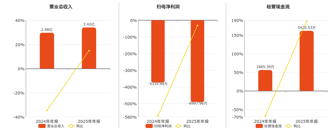 公司截至2025年12月31日,*ST原尚营业总收入为3.42亿元。截至2025年12月31日,*ST原尚归母净利润为-6997.96万元,较去年同报告期归母净利润减少1823.93万元。截至2025年12月31日,*ST原尚经营活动现金净流入为5420.53万元。