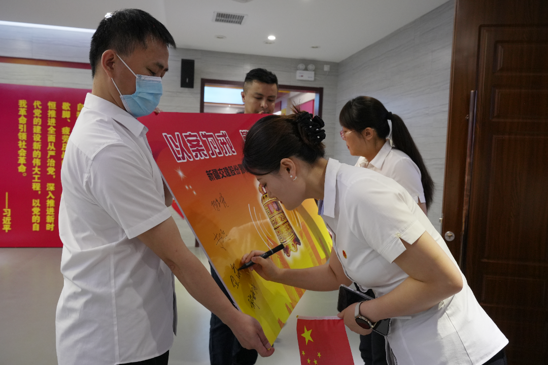 坚守初心方能不忘使命,锐意进取方能再创新功。李世伟与大家共同回望了新疆交通运输事业由艰难起步到今日腾飞的光辉历程,见证了这片热土上取得的瞩目成就。接着李世伟书记带领全体党员干部面对鲜红的党旗,高举右手,齐肩握拳,铿锵有力重温入党誓词。