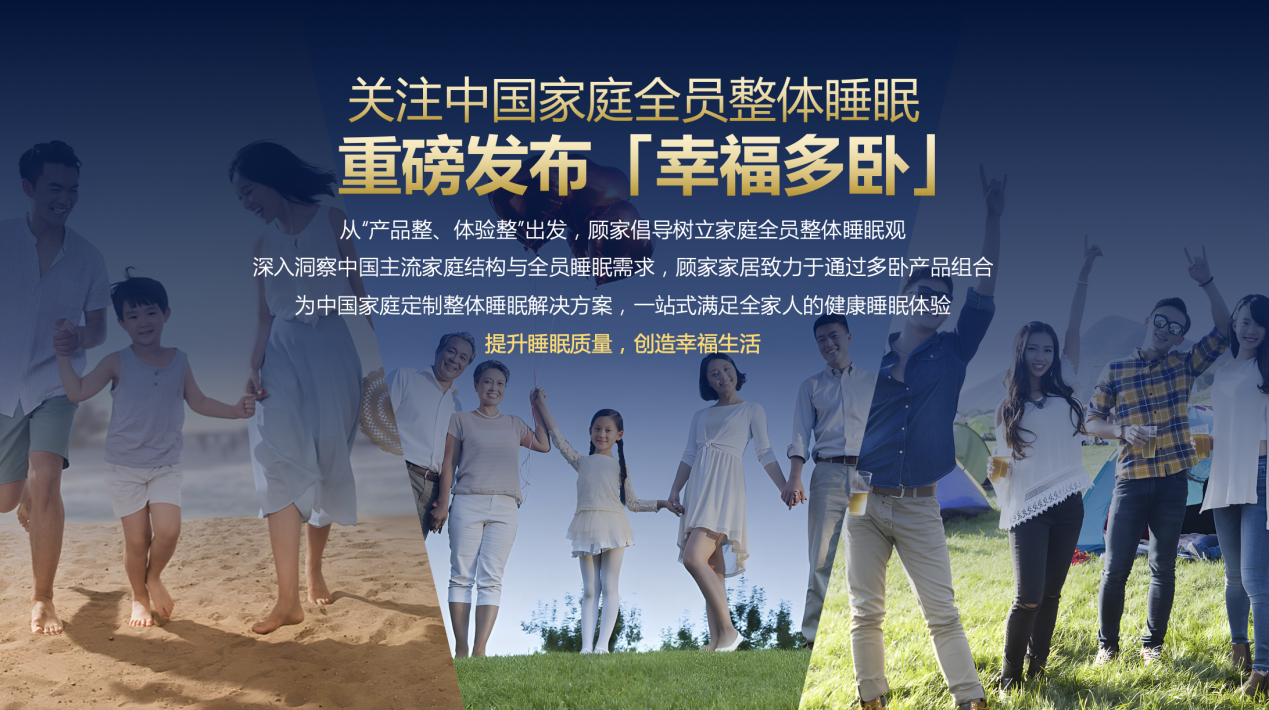 为了打造更舒适的睡眠环境,顾家家居深入洞察中国主流家庭结构和全员睡眠需求,致力于为中国家庭全体成员定制整体睡眠解决方案,因此,“幸福多卧”应运而生。基于家庭场景提出“幸福多卧”的概念,从“产品整、体验整”出发,顾家倡导树立家庭全员整体睡眠观,全面护航“不同人生阶段”,通过多卧产品组合一站式满足全家人的健康睡眠体验,从而改善家庭成员的身体和心理健康,提升国人睡眠质量,创造幸福生活。