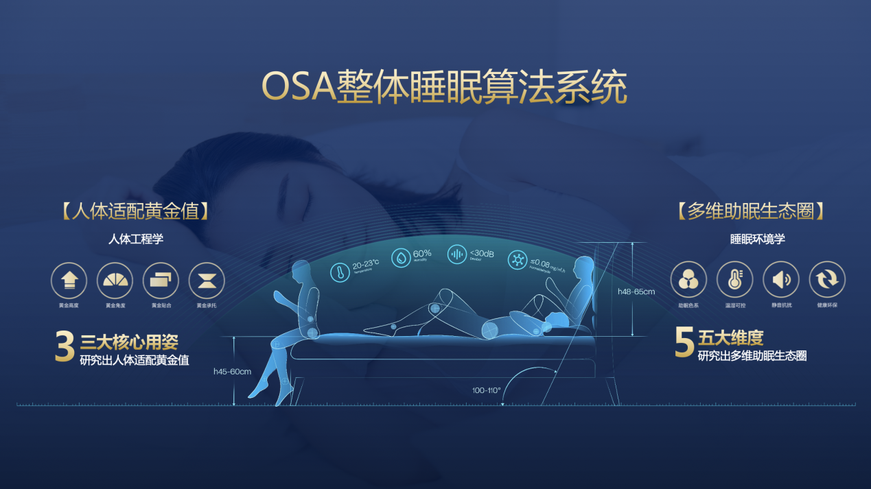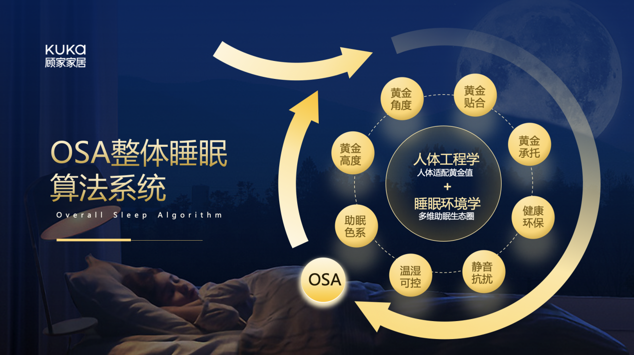 今年,在“产品整、体验整、服务整”的基础上,顾家家居再次对整体睡眠进行了全新的升级发布,与苏州大学共同成立“整体睡眠联合实验室”并联合制定《整体睡眠通用技术指南》,以技术创新为驱动,探索整体睡眠产品和服务的落地。同时,基于人体工程学和睡眠环境学全新打造的整体睡眠OSA算法系统,成为整体睡眠解决方案的主要技术支撑,能够帮用户延长深睡区间20%-25%,构建起睡前-睡中-睡后全场景的舒适睡眠环境。可以说,整体睡眠2.0的发布让顾家家居“整体睡眠领导者”的品牌形象更加深入人心,顾家家居将引领行业实现向全新阶段的升级跨越,开启睡眠算法新时代。
