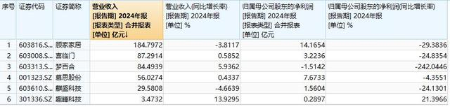 具体看,顾家家居营收、净利均领先。2024年顾家家居实现营业收入184.80亿元,同比下降3.81%;实现归属于上市公司股东的净利润14.17亿元,同比下降29.38%。