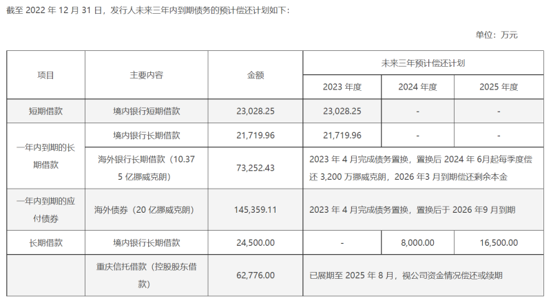 根据曲美家居对审核问询函的回复,截至2023年6月30日,曲美家居2023年度应偿还44,748.21万元到期债务中,已到期偿还33,195.50万元,尚需偿还11,552.72万元。2024年,曲美家居应偿还债务主要为8,000.00万元境内银行借款和9,600.00万挪威克朗境外银行借款。2025年,应偿还债务主要为16,500.00万元境内银行借款、12,800.00万挪威克朗境外银行借款以及62,776.00万元的控股股东借款。