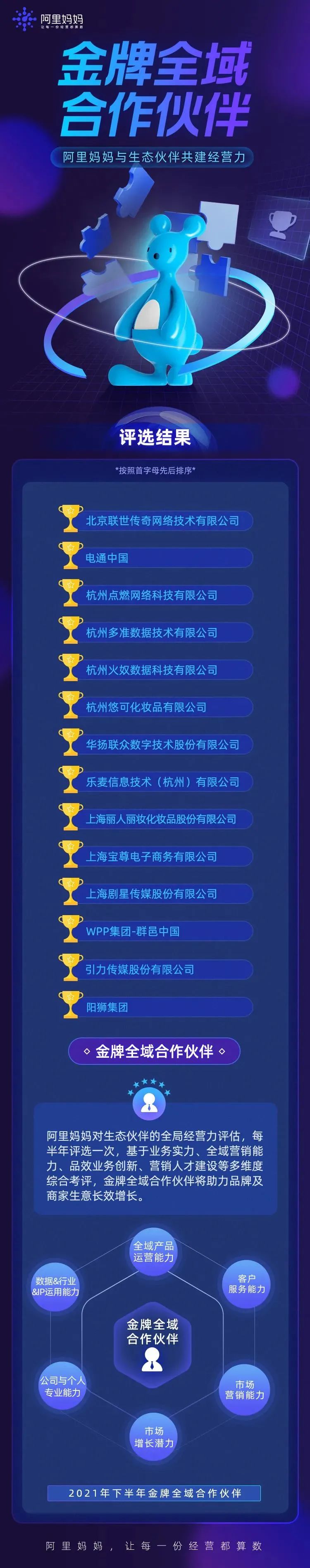 近日,阿里妈妈2021下半年金牌全域合作伙伴榜单揭晓——华扬联众凭借强大的全域经营实力和专业性、深度的全局经营服务能力,再次荣获“金牌全域合作伙伴”。这是阿里妈妈对于华扬联众在全域产品运营能力、客户服务能力、市场营销能力、公司与个人专业能力、数据行业IP运用能力、市场增长潜力等方面服务的深度认可。