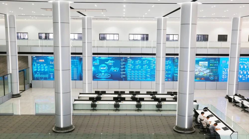坤彩科技管理驾驶舱,总投资超过6000万元人民币,占地面积超过2000平方米,由15面LED环屏组成,功能包括组合式多媒体调度台、智能会议平台等等,具有独特的“多屏+分布式坐席”架构,集合了厂区总览、研发、生产调度/生产控制、品保、物流、仓储、人员管理、安全/环保等各个环节的信息,打造以数字化控制台为基础、以实现信息可视化管理为目标的数据信息处理架构,以集成化、数字化、智能化手段解决生产控制、生产管理、企业经营的综合需求,通过生产数据采集自动化、生产厂房可视化和生产过程智能化,将为企业带来巨大的潜力和竞争优势,降低成本、提高生产效率与安全性。