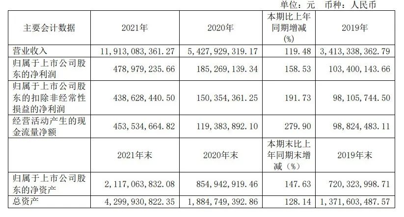 日前,海程邦达上市以来首份年报发布,公司2021年实现营业收入119.13亿元,同比增长119.48%;实现归母净利润4.79亿元,同比增长158.53%。