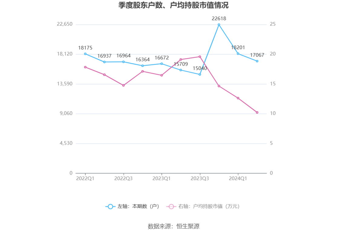 筹码集中度方面,截至2024年上半年末,公司股东总户数为1.71万户,较一季度末下降了1134户,降幅6.23%;户均持股市值由一季度末的12.63万元下降至10.22万元,降幅为19.08%。