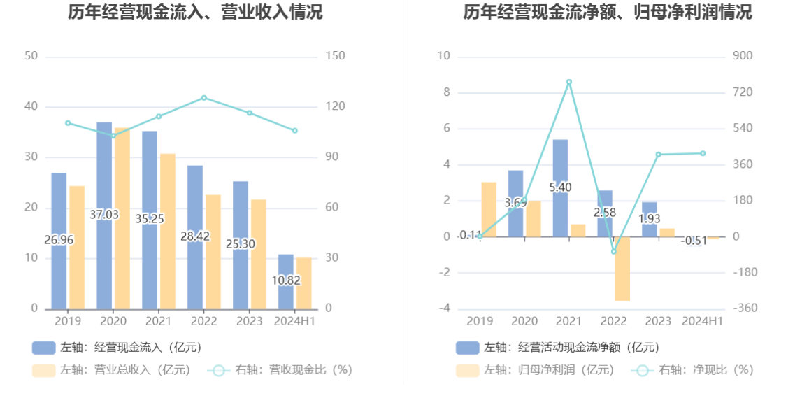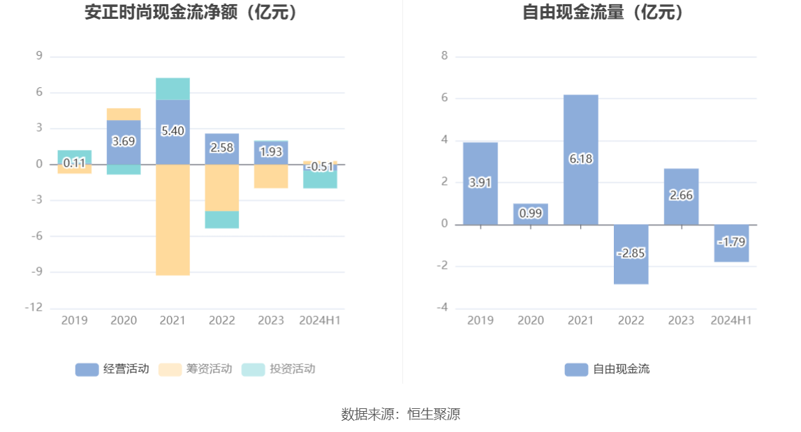 进一步统计发现,2024年上半年公司自由现金流为-1.79亿元,上年同期为2.09亿元。