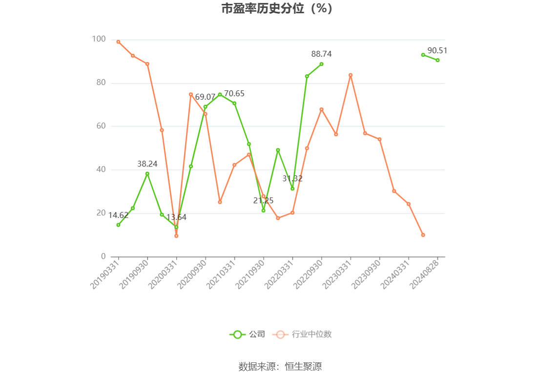 市盈率为负时,不显示当期分位数,会导致折线图中断。
