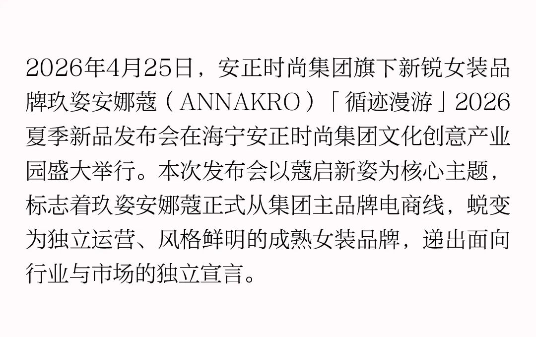 蔻启新姿 循迹漫游|安正时尚集团旗下玖姿安娜蔻2026夏季新品发布会圆满举行