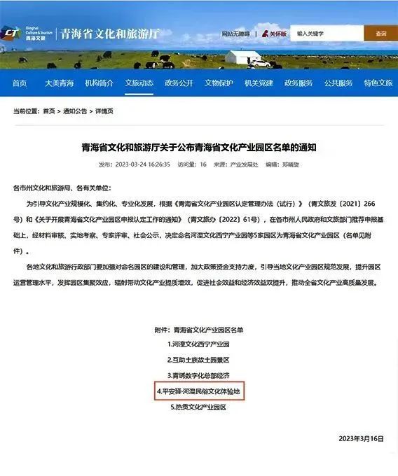 近日,青海省文化和旅游厅公布了青海省文化产业园区名单,正平股份平安驛·河湟民俗文化体验地成功上榜。
