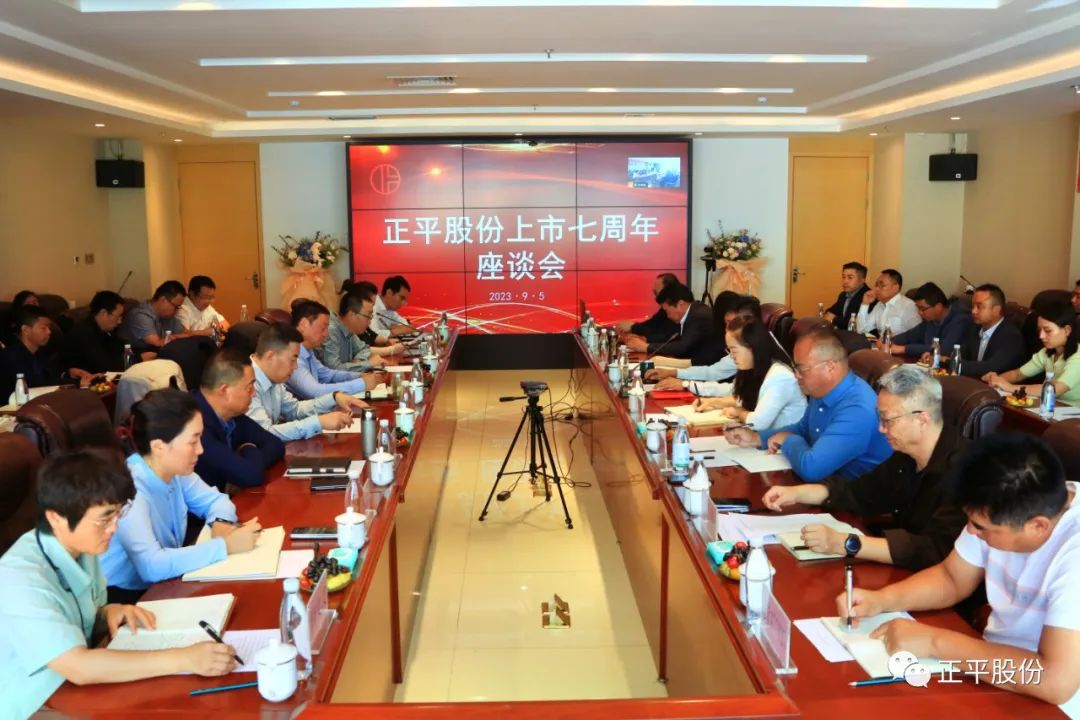 2023年9月5日,正值正平股份上市7周年,公司隆重举行“携手奋进七周年同心共筑新征程”座谈会。公司董事长金生光、副董事长、总裁金生辉、独立董事祁辉成、陈文烈以及在宁的董事、监事、副总裁、各直管公司领导班子成员、本部机关部门负责人、一线员工代表等现场参加座谈会。会议由副总裁、董事会秘书马富昕主持,在省外的董监高、所属各单位、各项目部通过视频方式参加此次座谈会。