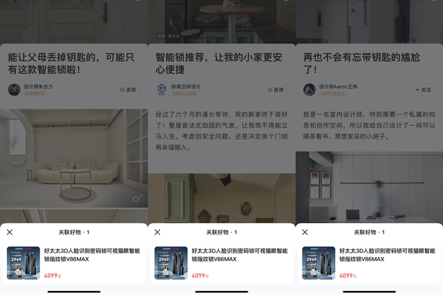 同时本次活动,好太太与多位站内设计师开启高频互动交流,一方面,通过设计师提供专业智能锁解决方案,让消费者透过场景轻松感知到好太太产品的独特魅力,以权威视角提升消费者对好太太品牌的信任度与好感度;另一方面,通过联动住小帮站内设计师,定制好太太体验式智能品牌IP,帮助好太太辐射至海量消费者种草,进一步提升其品牌声量。