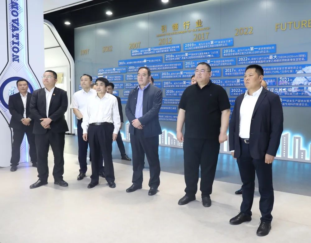 滕州水发集团领导一行先后参观了公司智慧体验馆、CNAS实验室和生产车间,详细了解公司发展历程、企业文化、生产规模和产品结构,重点察看了市政水务和国家重点工程等典型案例,参观了PVC-UH给排水、PE管、钢丝管和防腐钢管车间,了解产品生产工艺和产品优势。