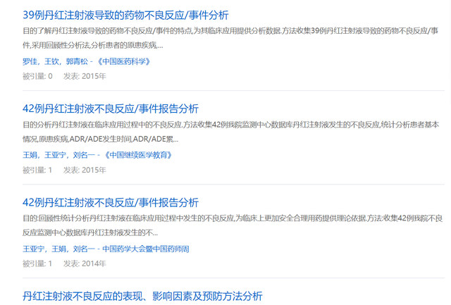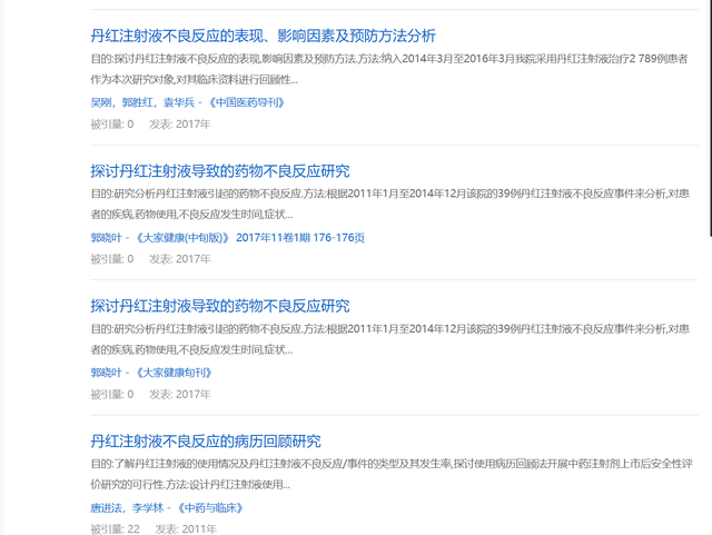 根据药品介绍,丹红注射液主要用于心脑血管病的治疗,但是虽然销售额巨大,患者的反馈表明,引发的不良反应越来越严重。百度学术收录的关于丹红注射液引发的不良反应已经当做众多医药届学术人士研究的反面案例。