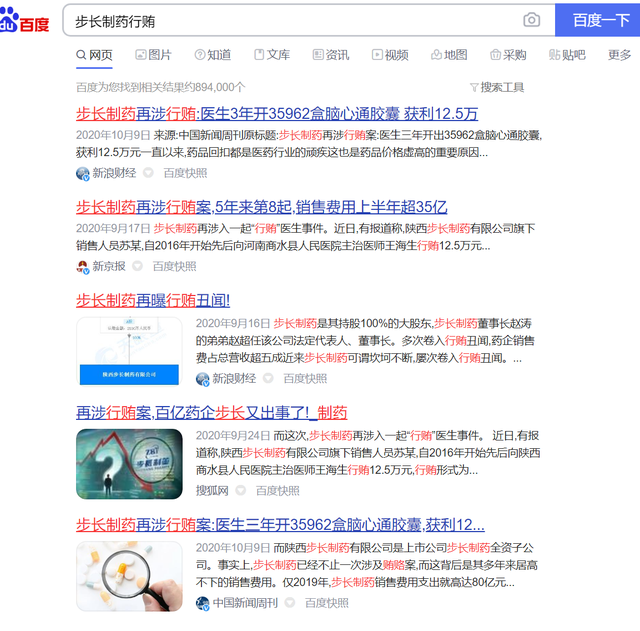 所以搜索一下关于步长制药的行贿问题,相关问题结果89万多。