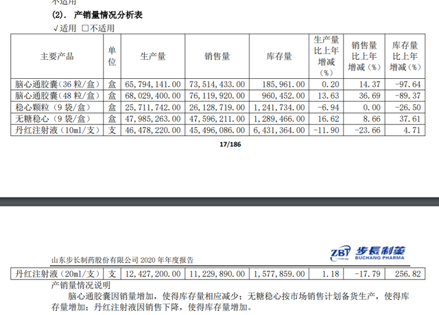但是,最为一款每年为企业带来数十亿营收的产品,步长制药自然不愿意放弃这款明星产品。在年报中,仍然被列为公司主打产品,2020年年报显示丹红注射液销量虽有下降,在主打产品中依然地位稳固。