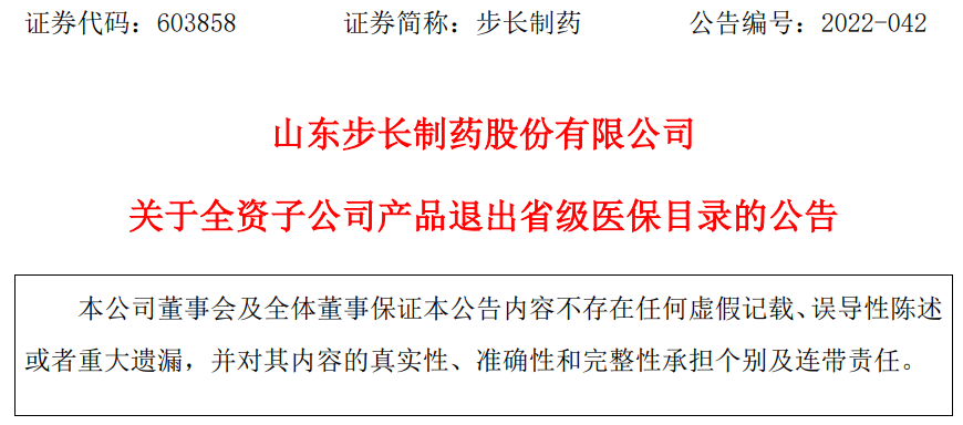 4月6日,步长制药发布公告称,其全资子公司谷红制药药品谷红注射液将于2022年12月31日退出安徽省医保目录。