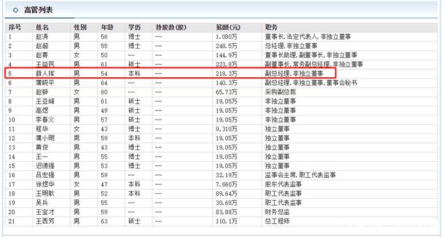目前薛人珲的薪酬为218.3万,与他同一级别的蒲晓平在同一报告期内的薪酬为140.3万。