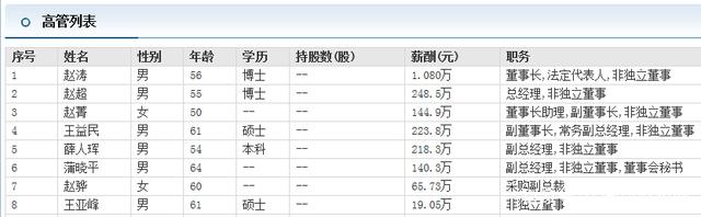 众所周知,药企高管薪资不少,步长制药高管们也是如此。步长制药如今7位高管,其中三位高管薪资都在两百万以上。身为公司副董事长、常务副总经理的王益民去年从公司获得的薪资在两百万以上,是223.8万。和他薪资情况一样的两人,分别是担任公司总经理的赵超,其薪资248.5万,另一位是公司副总经理薛人珲薪资是218.3万。