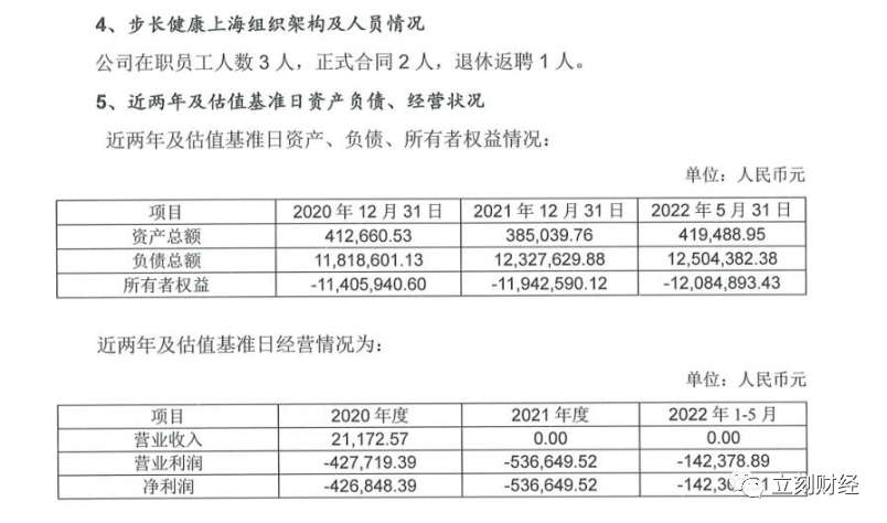 这家年年亏损资不抵债的保健品企业几乎就是一个“空壳”,估值报告显示,公司在职员工人数只有3人,正式合同2人,还有一人为退休返聘。
