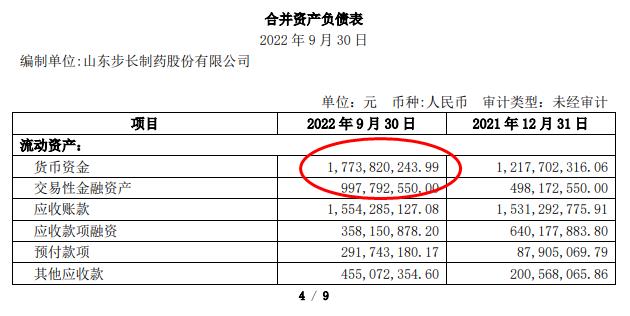 财报显示,步长制药资金面不宽裕,截止到9月30日,步长制药拥有货币资金和交易性金融资产总额为27.7亿元,而借款金额高达26.8亿元。