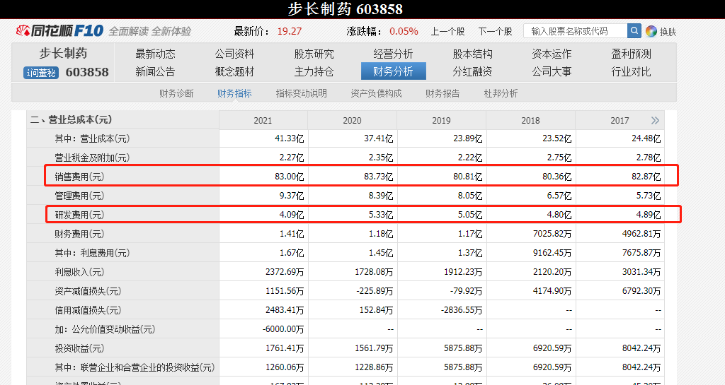 另外,相对于研发投入,步长制药在销售渠道上更为不惜“砸下重金”。2021年,公司研发费用为4.09亿,销售费用却高达83亿,销售费用是研发费用的20余倍,销售费用占营业总收入的52.65%。