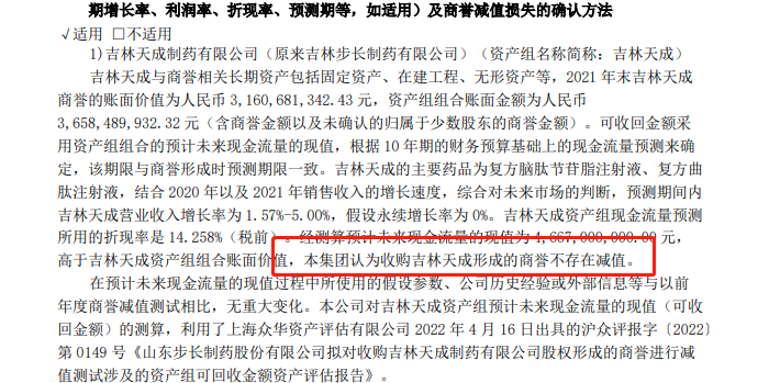 据业绩预告,截止2022年末,公司商誉账面价值为513,284.74万元,主要为步长制药收购通化谷红和吉林天成股权形成,其中收购通化谷红产生商誉为183,611.52万元,收购吉林天成产生商誉为316,068.13 万元。