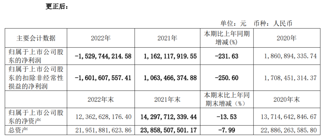 与商誉减值公告同时发布的《2022 年年度报告及摘要的更正公告》显示,受此次商誉减值影响,去年步长制药归母净亏损15.3亿元,同比下降231.63%。今年4月公布的年报数据显示,其营收149.51亿元,同比下降5.15%,归母净利润由盈转亏达到16.57亿元,同比下降228.51%,这是步长制药2016年上市以来,归母净利润首次出现亏损。