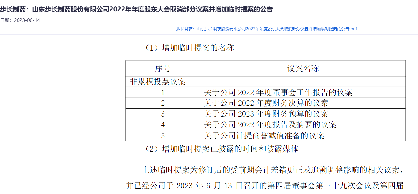 但从公告看,相关方已增加临时提案,包括取消的《关于公司2022年度报告及摘要的议案》《关于公司计提商誉减值准备的议案》等,公告显示,临时提案为修订后的受前期会计差错更正及追溯调整影响的相关议案,目前相关议案有待经股东大会审议。