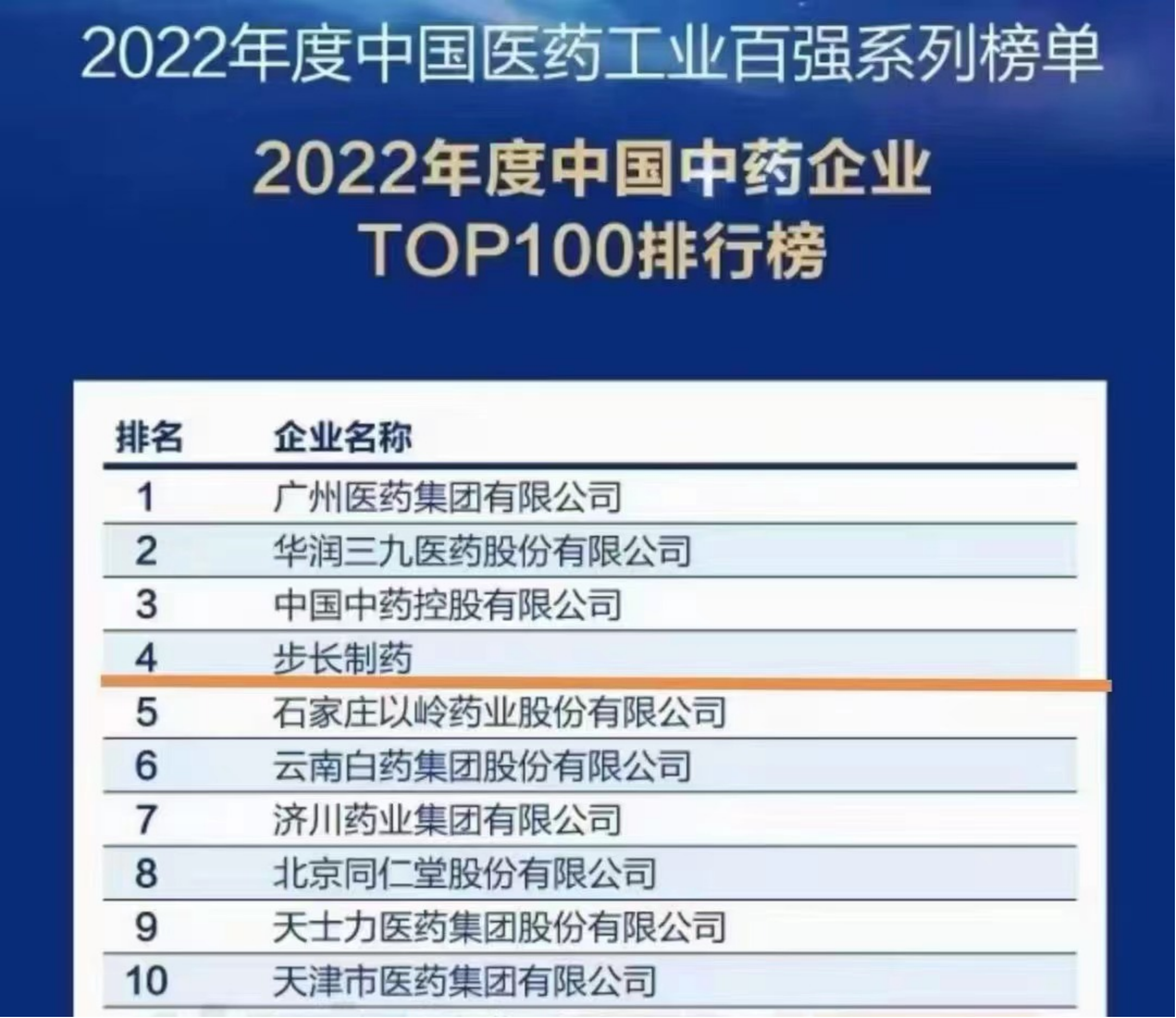 近日,米内网“2022年度中国医药工业百强系列榜单”正式发布。步长制药(603858.SH)凭借其卓越的表现和杰出的实力荣登荣登“2022年度中国中药企业TOP100排行榜”,位列第4位。值得注意的是前三位均为国企,步长制药稳当民企龙头。