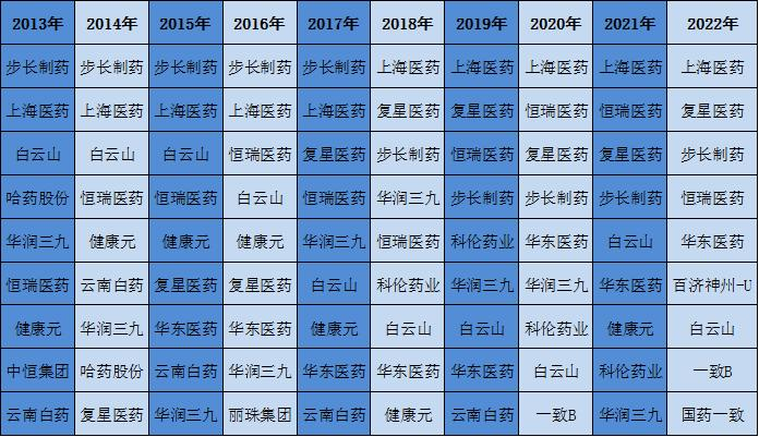 2013年至2022年每年销售费用前十企业名单来源:根据wind数据整理