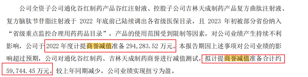 三款产品全部被调出医保目录后,2023年初又被部分省份纳入重点监控目录。2023年步长制药又对这两家公司计提商誉减值5.97亿。到去年年减值完后,这两家公司账面上还有36亿多的商誉之雷。