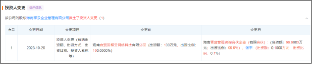 值得关注的是,2023年,仅海南椰云众包科技有限公司一家便从步长制药获得了高达4.49亿元的销售费用,远高于2022年前三大支付对象销售费用总额。此外,据天眼查显示,海南椰云众包科技有限公司于2023年10月发生了投资人变更,变更后原实控人陈杰已不在持股人之列。