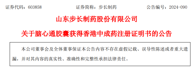 近日,脑心通胶囊通过香港中医药管理委员会中药组注册审批,取得了香港《中成药注册证明书》。现将相关情况公告如下: