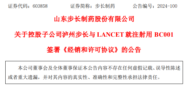 COMPANY(以下简称“LANCET”)签署《经销和许可协议》,泸州步长拟许可