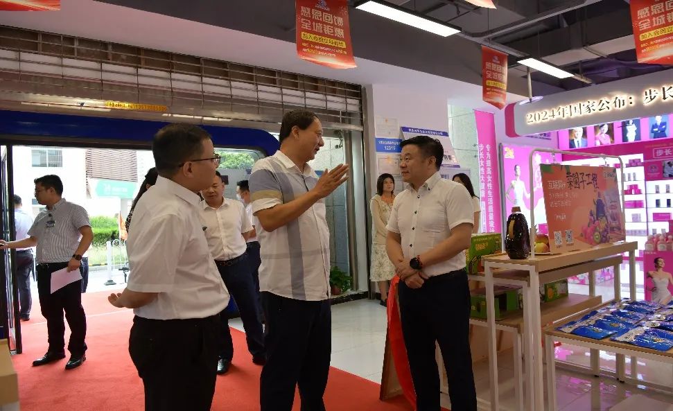 各位领导、嘉宾进店参观步长启航大药房以及美佳佳体验店、妇科专柜,感受药房专业化、智慧化。
