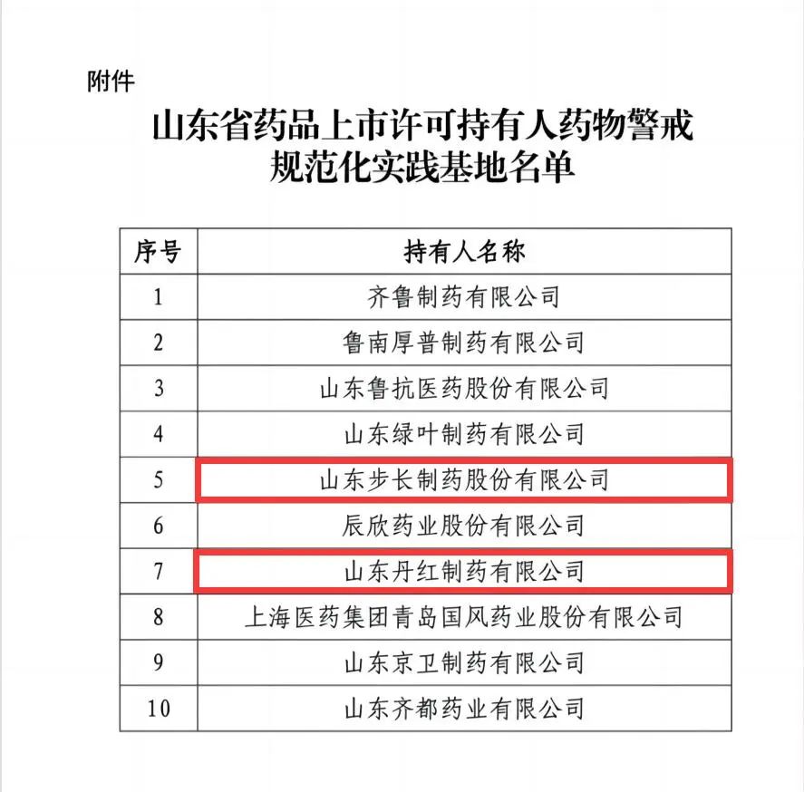 经过推荐、评估、公示等程序,近日山东省药品监督管理局公布了山东省首批10个药品上市许可持有人药物警戒规范化实践基地,山东步长制药和山东丹红制药双双光荣上榜。